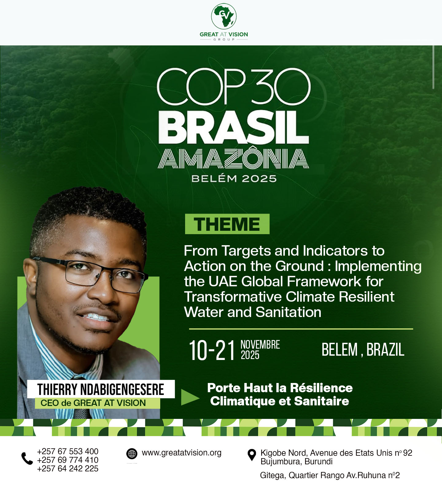 Represented by Thierry Ndabigengesere, CEO of Great At Vision Group (GAV) and a passionate climate-action advocate, Burundi delivered a clear and powerful message: